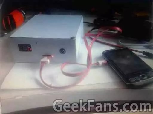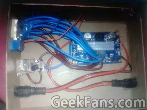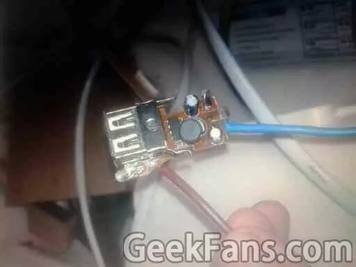 2.将电位器拆下用导线延长并将电位器,电压表,USB口和DC插座用热熔胶固定在密度板上。