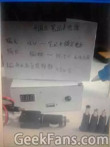 这款电源可以用12V锂电池,12V铅酸电池,12V车用电做输入,升压到12v到35V为笔记本供电。