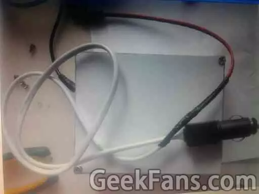 第三步:1.将导线焊接在车用电插头上。2.将DC插头与导线连接。