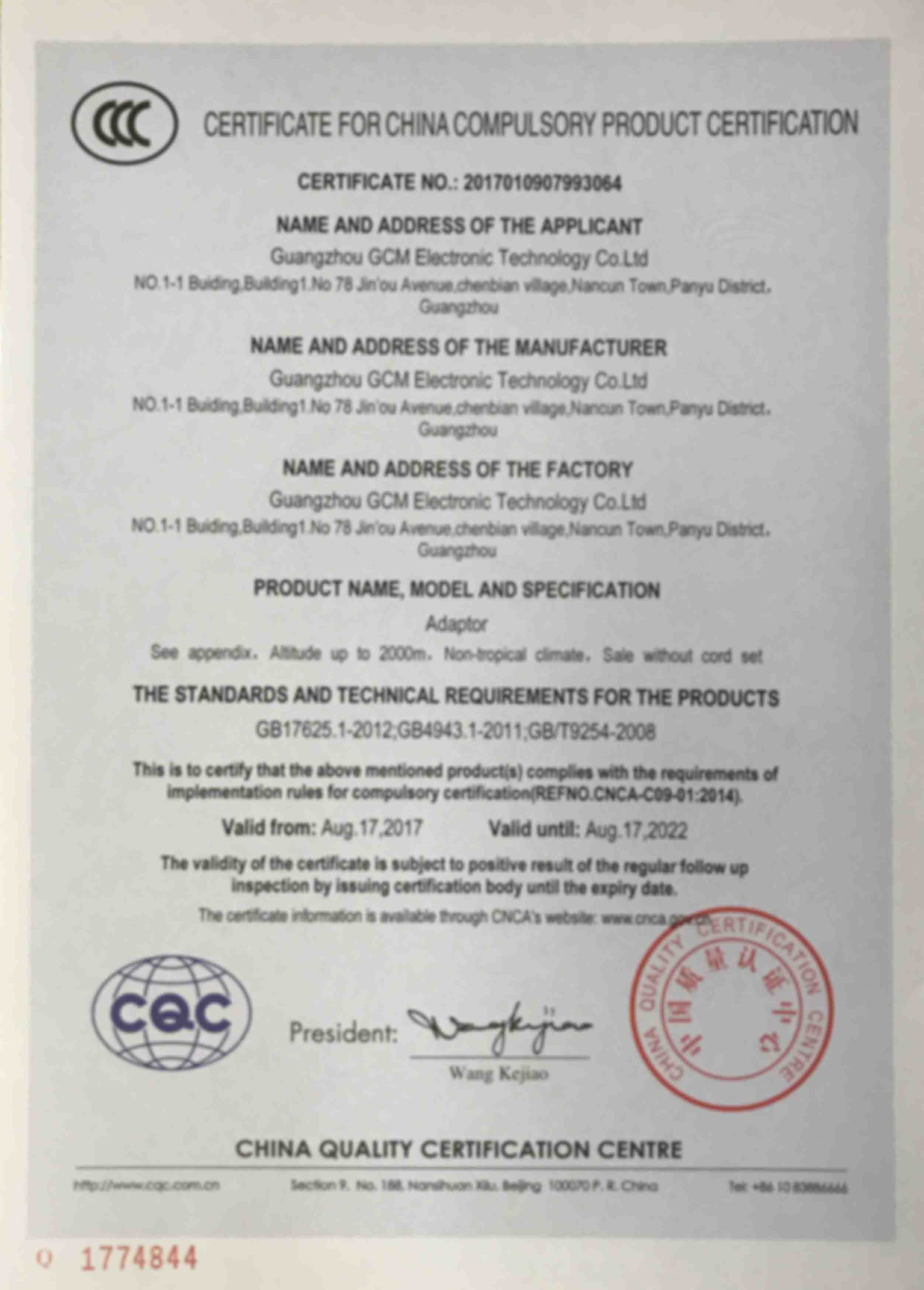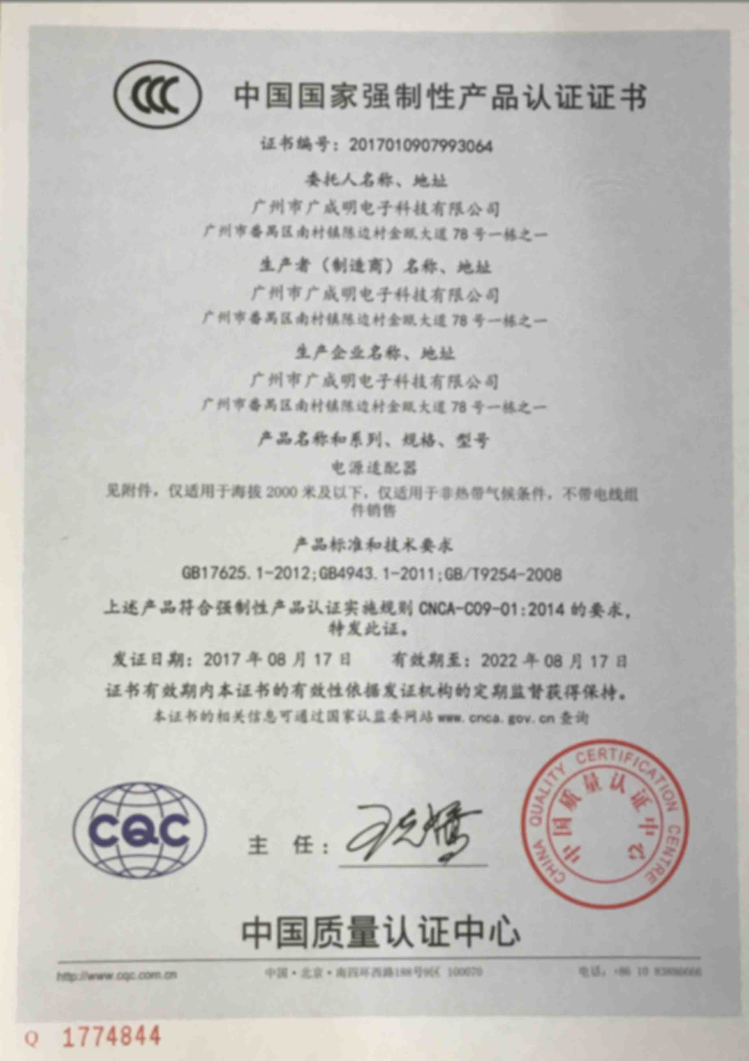 热烈祝贺(百鼎集团)广成明电源荣获3C证书