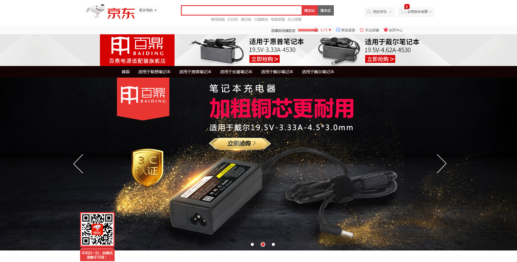 2018年9月,电源适配器品牌—百鼎,正式进驻京东开设品牌官方旗舰店! 这是广成明电子科技有限公司继2017年开设百鼎1688、淘宝官方旗舰店后的又一重大市场动作,致力于将“安心安全”的电源适配器带到每一位消费者身边。
