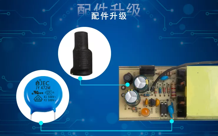 更高品质Y电容的提升,有效降低电气,电子设备或其他干扰对电源产生电磁干扰,保障产品稳定。